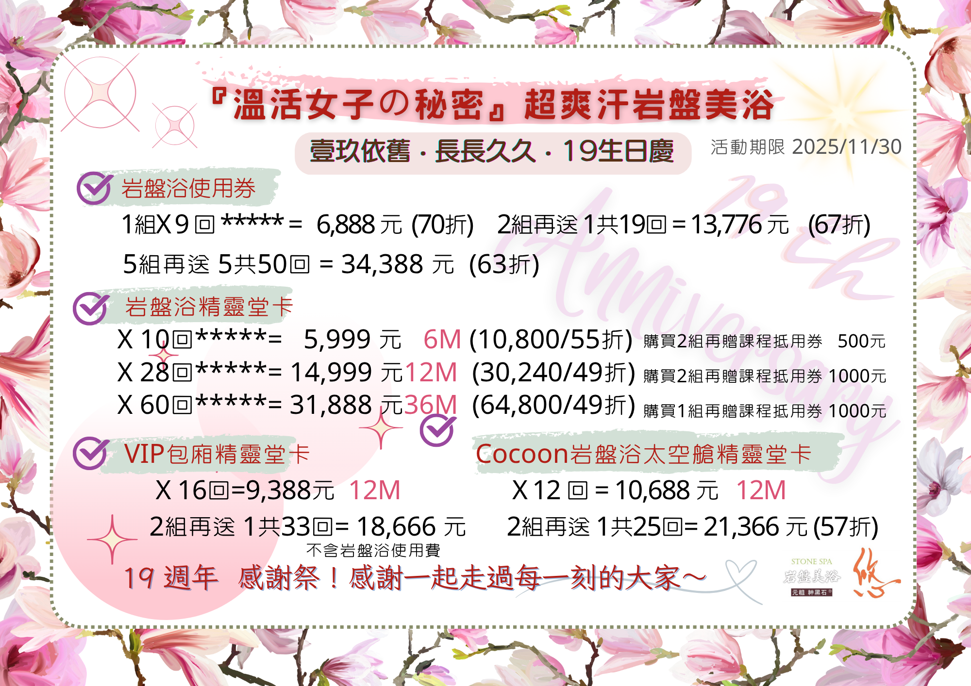 岩盤浴是一項風靡日本的美容服務,透過岩盤浴流汗不僅能夠排出體內的毒素,幫助你養顏美容,更有助於促進身…